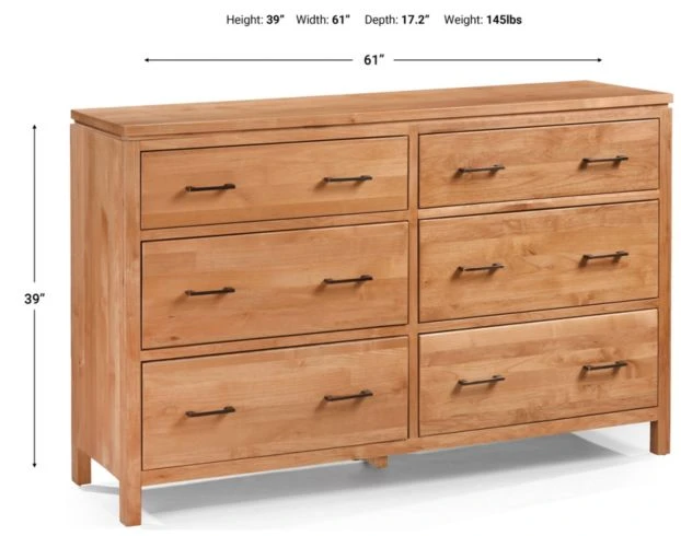 The 2 West dresser is constructed from solid alder wood, which provides a clearer and less knotty wood appearance, while also being extremely sturdy and durable. It features six spacious drawers, including two dedicated blanket drawers. The English dovetail construction and full extension glides ensure this high-quality piece lasts for years to come.