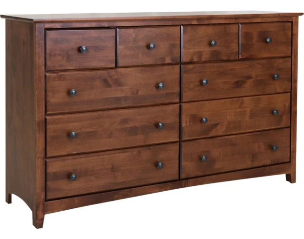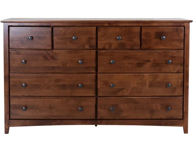 With a transitional design, this dresser brings a stunning yet simple look to your space. Its warm toned alder wood brings a cozy feel, perfect for any master bedroom or guestroom. With ten English dovetail glider drawers, you’ll have ample space for your storage needs.