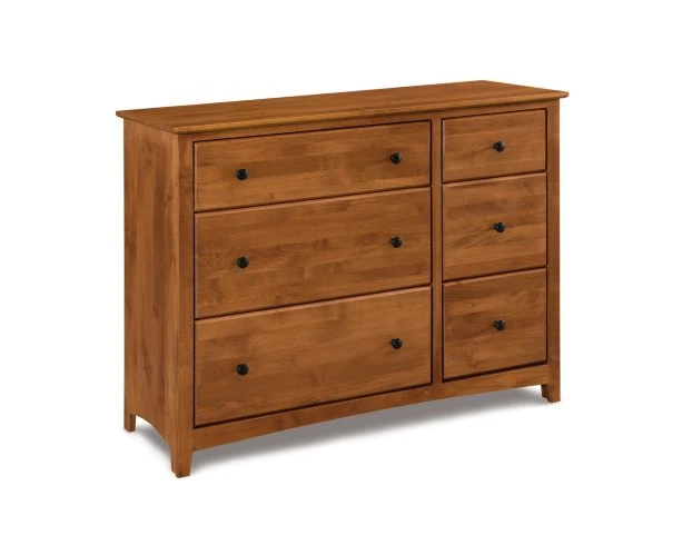 The Archbold Furniture Shaker Dresser is a classic piece perfectly suited to fit a transitional-styled bedroom. The thoughtful craftsmanship features full extension drawer glides, English dovetail drawers, and solid wood throughout. Finished in a lovely golden pecan color, this piece is built to last with beautiful attention to detail.