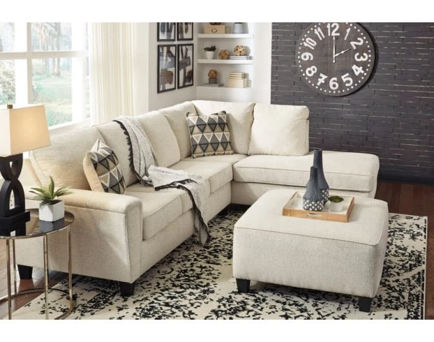 Create a neutral look in your home with the Ashley Abinger Natural Oversized Ottoman. This piece offers a cream-tone chenille upholstery and plush texture for that casual comfort look we all crave. Take advantage of its versatile design by using it as a footrest, seat, or impromptu table. No matter where you place it, this piece makes a one sensational sidekick.