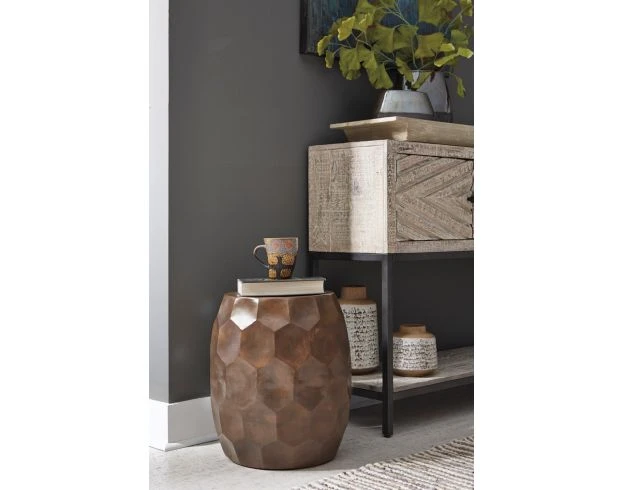 Fall in love with this copper stool. Its burnt copper metal material is crafted in a honeycomb design to enhance its rustic aesthetic. Use it as a stool or accent décor to highlight the natural colors in your home. Due to the finishing process of this product, some variations may occur. LOC 2E