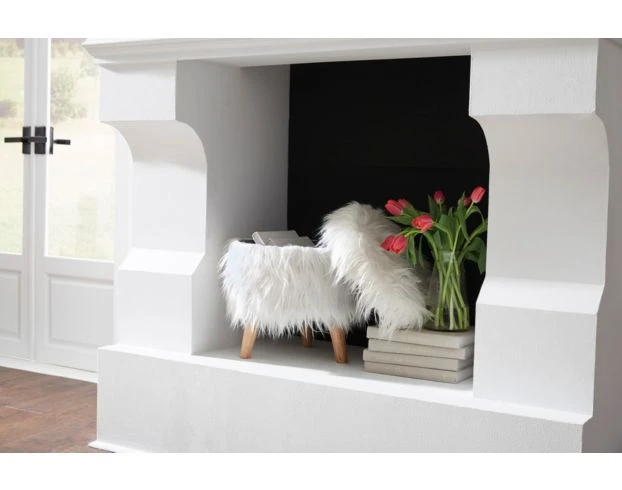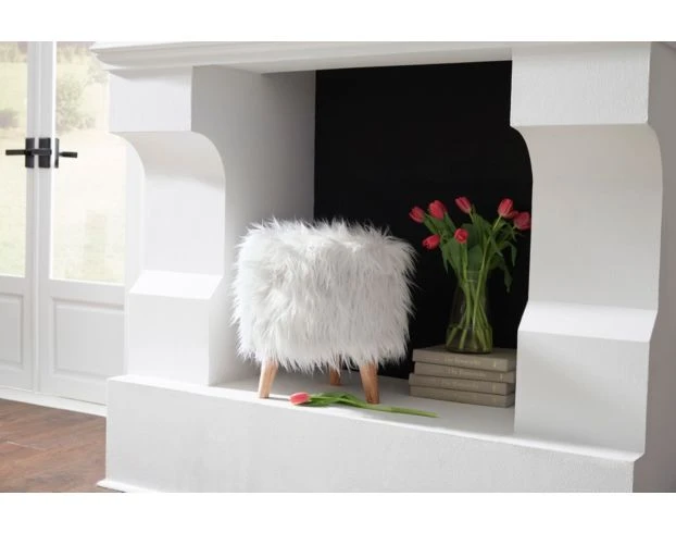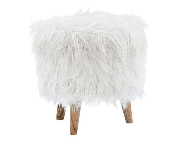 Introduce functionality to your living room with this white storage ottoman. This piece flaunts a round-shaped faux fur fabric seat in white supported by four tapered natural wooden legs. Take advantage of its storage space by removing the top to reveal the hidden storage compartment. Boast casual elegance in your home with this storage ottoman.