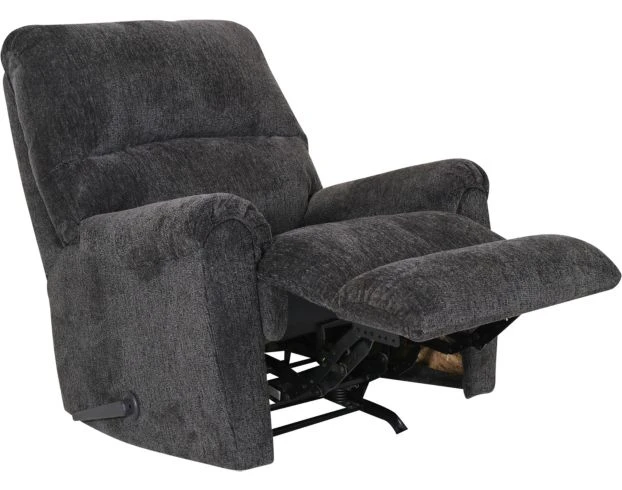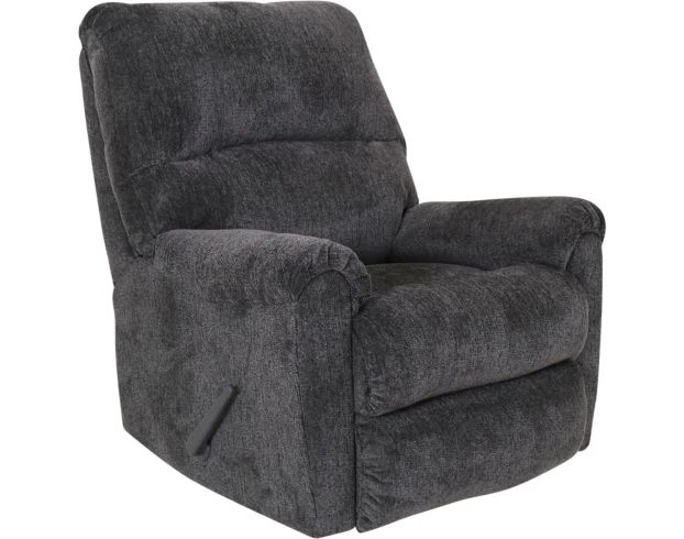 Kick your feet up and relax in this inviting recliner, which features soft padded arms, plush cushioning and smooth reclining mechanisms for full body relaxation and comfort. The smoke gray hue is versatile enough for any room in the house. LOC: 0
