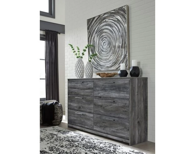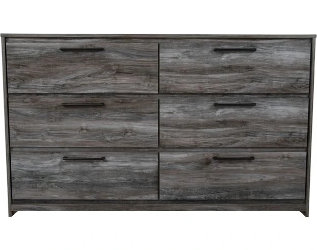 Beachy style and lots of storage go hand in hand with this stunning dresser. It features six roomy drawers, replicated oak grain, linear pulls with a gunmetal-tone finish and faux linen lined drawers. Its driftwood and surfer-inspired smoky finish are perfect for any casual style.