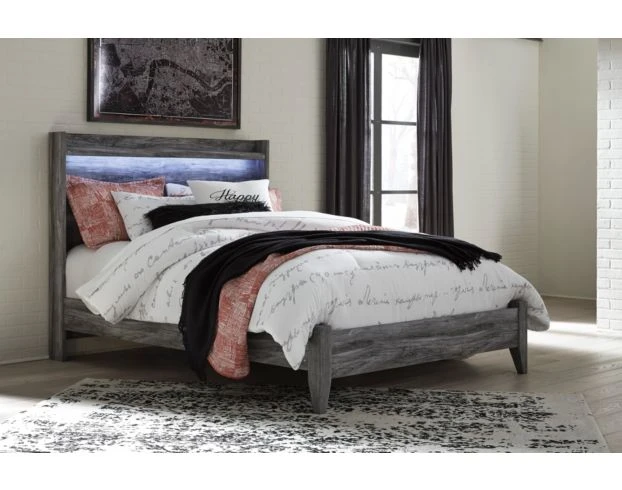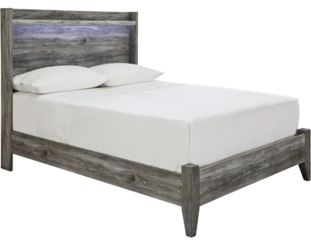 Beachy style and lots of storage go hand in hand with this stunning queen panel bed. The modern bookcase headboard includes a dimming LED light under the shelf. Its driftwood and surfer-inspired smoky finish are perfect for any casual style. Clean lines and modern charm blend for an authentic look to be enjoyed for years to come.