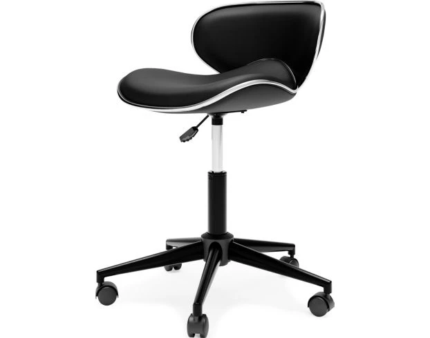 Give your home office an upgrade with this desk chair. It features convenient casters, adjustable height, and a contoured cushioned seat and back that are highlighted with an eye-catching chrome-tone metal finish. The black faux leather upholstery will add a rich ambiance to your home office.