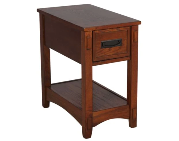 This handsome chairside table offers convenient storage space, including a drawer and a fixed shelf. The rich finish highlights the Arts & Crafts styling, creating the perfect look for any transitional space. Additional features include: Oak veneers, storage area. LOC: 7F