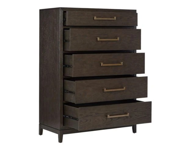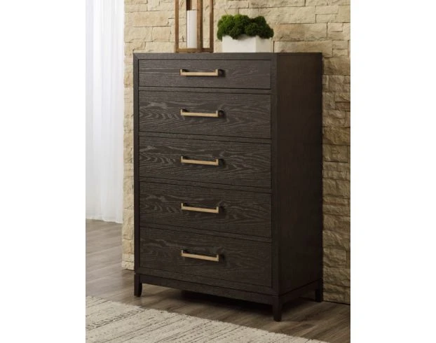 Stylish and functional, this beautiful five-drawer chest will bring life to any space in your home. Transitional in design, it will seamlessly integrate with other styles in your space. Bring function and form into your master bedroom or guest room with this standout dark wood chest.