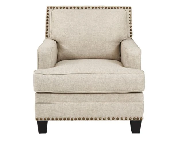 Enhance your contemporary space with the Ashley Claredon Chair. It features track arms, tapered feet, and an elegant, nail head trim. It’s fabric material and tan hue makes this piece a must-have for your living space.