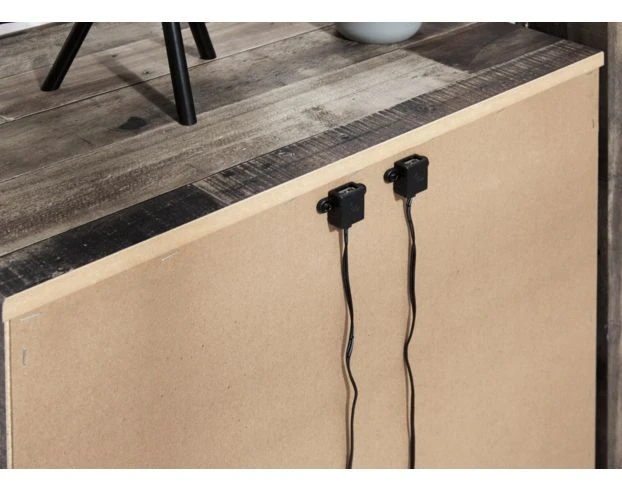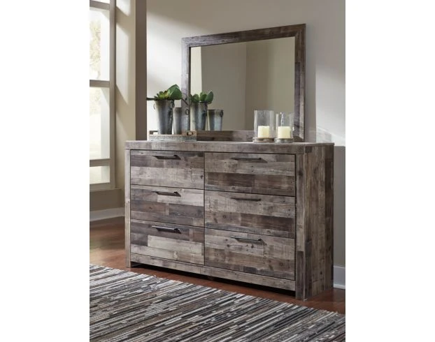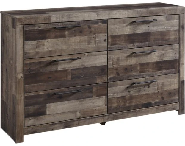 Create an inviting bedroom with this four-piece bedroom set. This set includes a queen-size panel bed, nightstand, dresser and mirror. The rustic design complements the contemporary feel, making this set a must-have for any bedroom.
