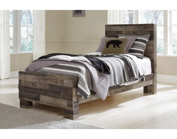 Create an inviting bedroom with this two-toned panel bed. The rustic design of this twin-size bed complements the contemporary feel and gray hues, making this a must-have for any bedroom.