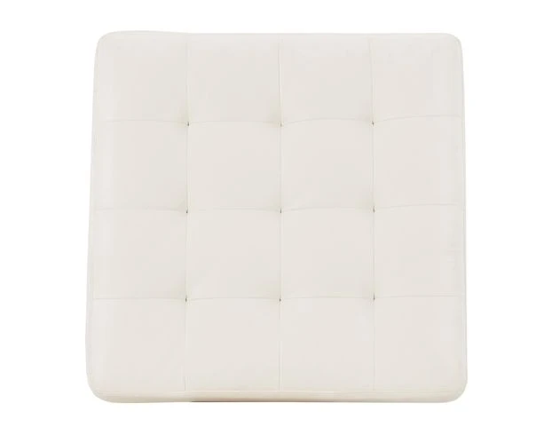 Dressed in glorious white faux leather, this oversized accent ottoman is certain to be the center of attention. With a tastefully simple design, it adds style and comfort underfoot. This versatile companion piece has a generous scale that lets you share the space with family or use it for entertaining when friends drop in.