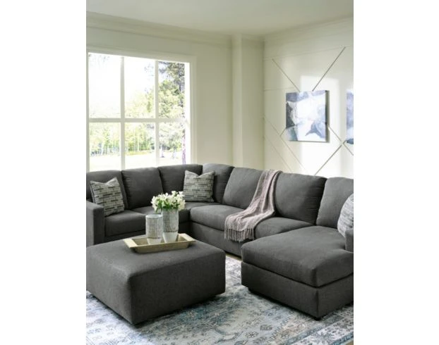 Contemporary fashion, meet superior form. This oversized charcoal ottoman is strikingly streamlined in design, with its handsome charcoal upholstery speaking to tried-and-true modern color palettes. Kick back, relax and settle into the calm of your curated space.