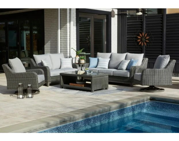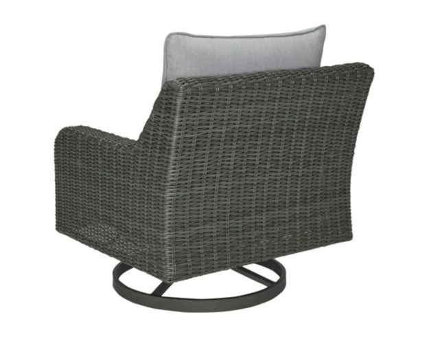 Add a distinguished look to any outdoor living space with this cool, casual swivel chair. Made from aluminum, the frame covered in resin wicker provides seasons of enjoyment. The thick, comfortable cushions are wrapped in Nuvella ® high-performance fabric, giving you stain and fade resistance and an easy-to-clean surface.
