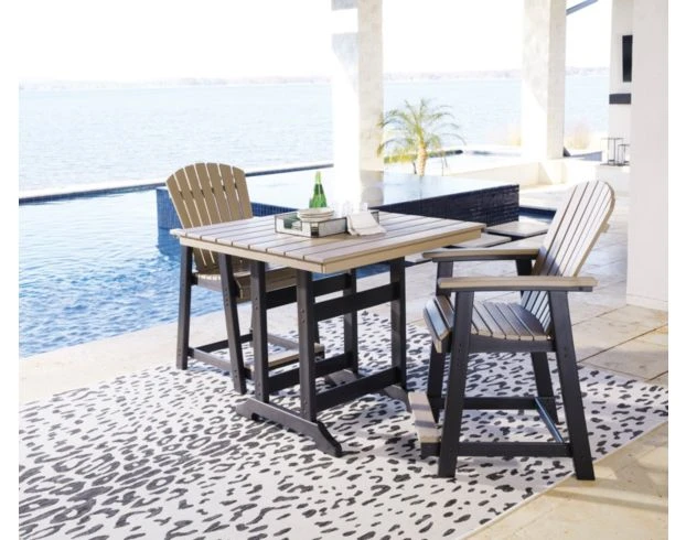 Bring your outdoor living space to new heights with this three-piece counter set, great for perfecting any outdoor living space. With the stunning pairing of driftwood and black tones made from MEGA TUFF ™ durable and weather resistant material, easily integrate them into any style.