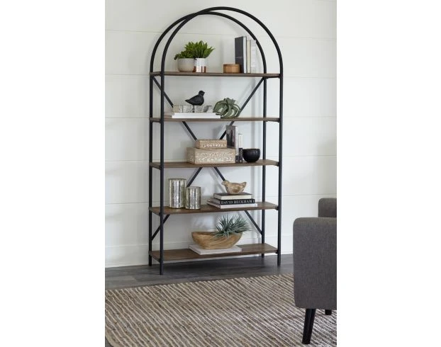 Add an authentic touch to your industrial interior with this bookcase. It features five fixed shelves that are perfect for showcasing decor and a distinct mix of materials with its open metal framing and distressed wooden shelves. Make yourself right at home with this stylish rustic addition. LOC 5B