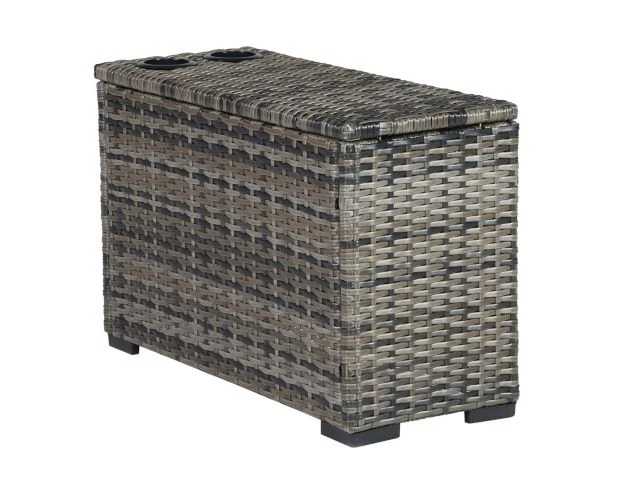 Add versatility and comfort to your outdoor living space with this console. Made of hand-woven wicker over an aluminum frame, its built to last through all the seasons of weather. The two drink holders allow for another level of enjoyment while you relax with a beverage, or even two. Make the most out of your space with this comfort centric console.