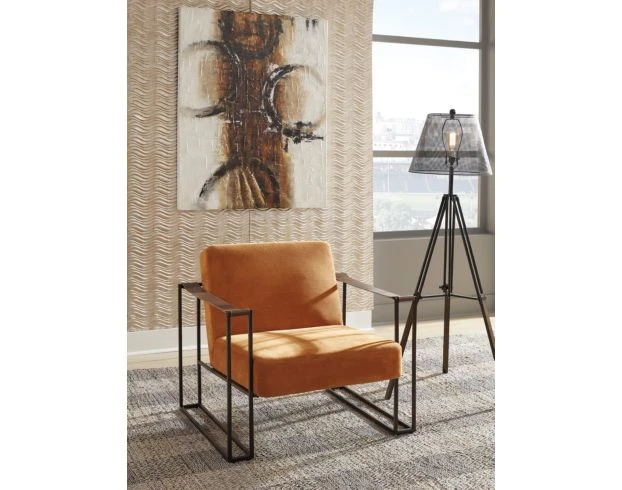 Create the perfect Mid-Century Modern space with this charming accent chair. It features straight feet, a tight back and track arms. The light cognac brown hue complements any mid-mod space perfectly. LOC: 21I