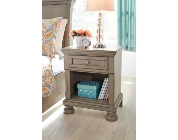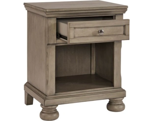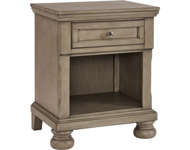 This nightstand will complement any bedroom nicely. It features bun feet, one pull drawer, and a silver tone patina hardware. Its traditional style enhances sophistication, while its burnished light gray finish elevates its modern sensibility.