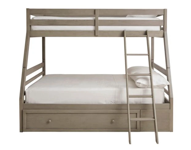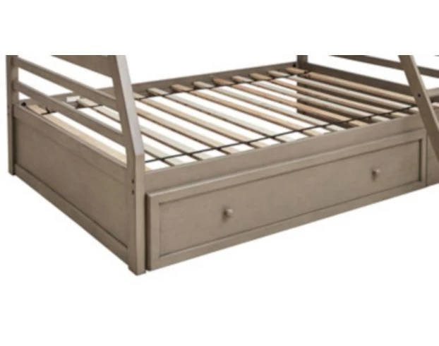 Create a casual and cozy bedroom atmosphere with this under-bed storage unit that works under both the twin and the full lower bunk. This impressive design is constructed from sturdy birch veneers and hardwood solids, in a pleasing light gray finish. The storage drawers feature ball bearing drawer glides, dovetail construction and smooth knob pulls.