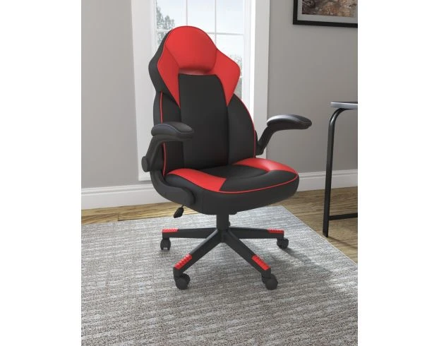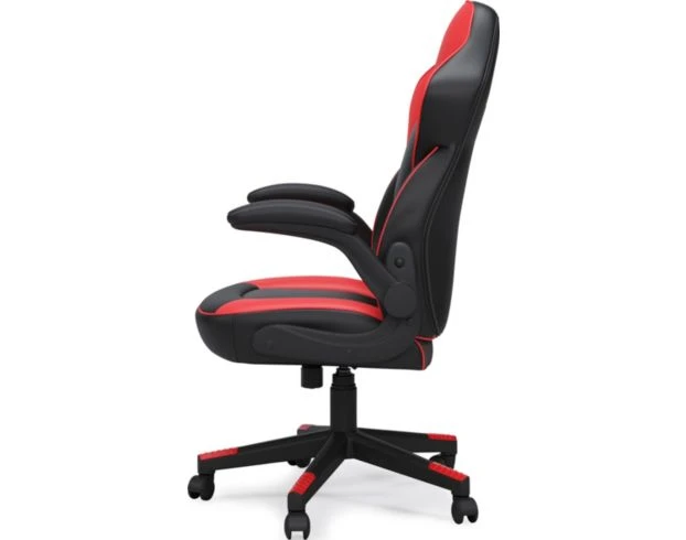 This desk chair is packed with features to help you game in style and comfort. The sturdy steel frame, comfy contoured seat, faux leather upholstery, smooth swivel ability and casters, and adjustable height and tilt all combine to make this chair the ultimate gaming accessory. The red and black upholstery makes this an eye-catching addition for any gaming setup.