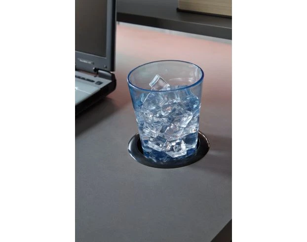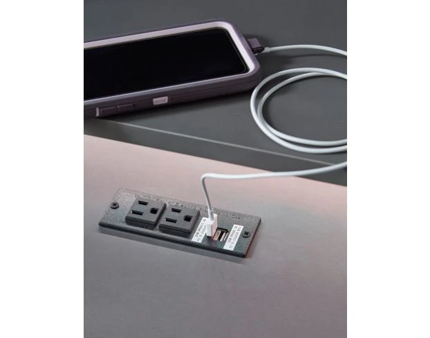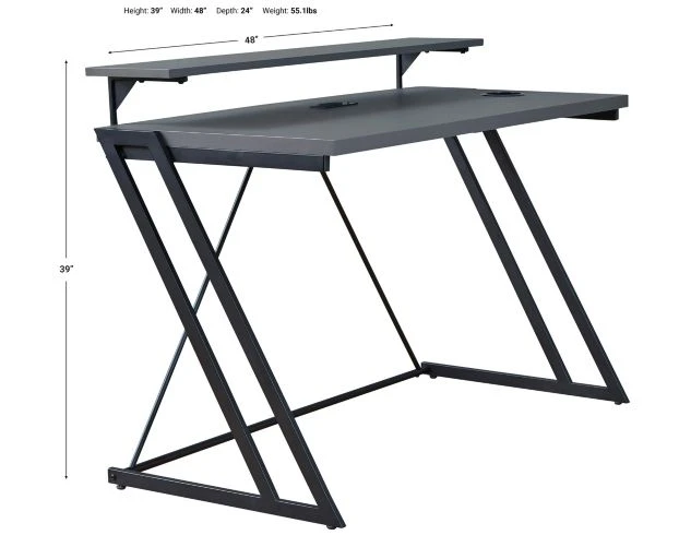 Add streamlined style to your gaming space with this gaming desk. It flaunts an unbeatable modern design with its durable solid gray melamine top and black powdercoat finished metal frame. It also includes a mouse trackable inset PVC panels, raised monitor stand, integrated cup holder, custom headset hanger, and dual USB charging ports. Plus, a LED ambient light strip! This desk is sure to add ultra-modern vibes to any gaming station.