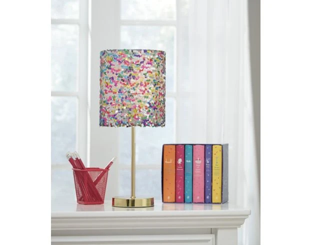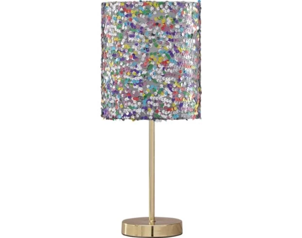 Add glamour and charm to any room with this fun table lamp. It features a drum shade with multi-colored sequins and a metal base with a gold finish. The quirky design and eye-catching palette make this the perfect addition to any casual space.
