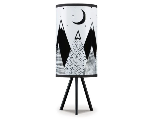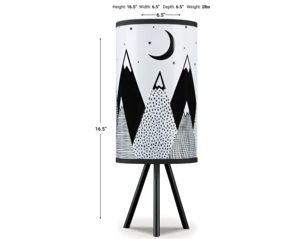This table lamp is designed to enhance the nature-inspired mood of your living space. Crafted of metal with a unique drum hardback mountain-themed shade, the lamp offers a contemporary spin on traditional lighting decor. It features an on/off in-line switch.