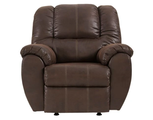 Kick back and relax with this inviting recliner, which features padded arms, plush cushioning and smooth reclining mechanisms that melt away tension. The brown hue makes any space feel warm and cozy. LOC: 11D