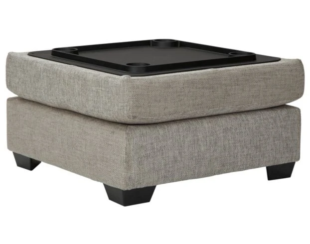 Master the art of being stylishly organized with this storage ottoman. It features block feet and a plush cushion top for kicking up weary feet. Lift the top of the ottoman to reveal the storage compartment, but don’t forget to flip the top over to see the built-in table top with cup holders! Create a high-style look in your home with this stunning storage ottoman. LOC: 9D