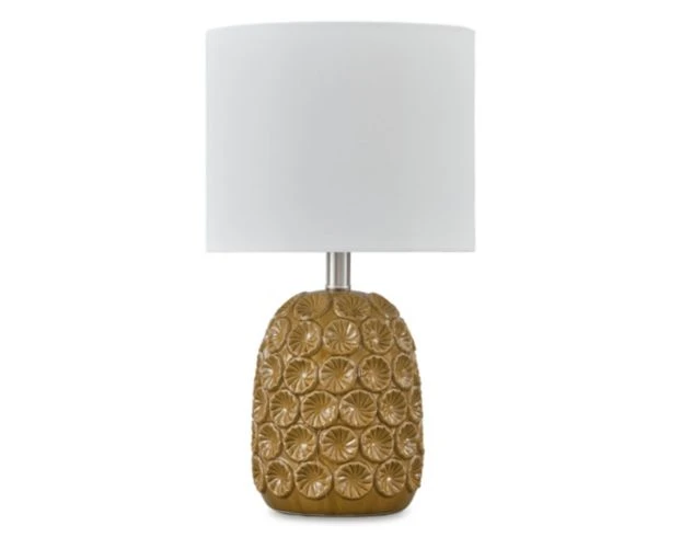 The Moorbank table lamp is beautiful, artsy and a truly eye-catching addition to your decor. It features a hi-lo pattern that plays with the shadow for a more dimensional look. Topped with a white fabric drum shade for the perfect finishing touch. It features a amber glazed ceramic base, hardback fabric shade and an in-line on/off switch.