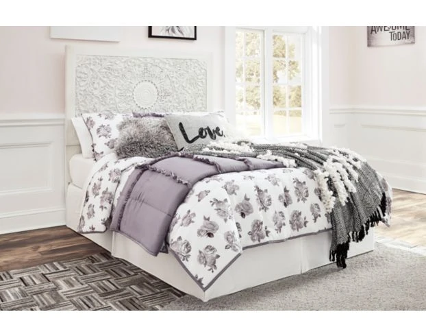 Your young trendsetter can live out their free spirit with the Ashley Paxberry Full Headboard. This chic-inspired piece features a whitewash finish and a beautifully carved medallion design. This must-have headboard will complement any traditional bedroom.