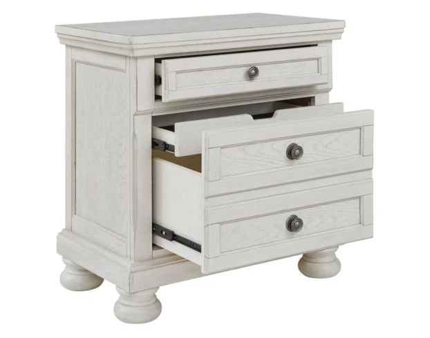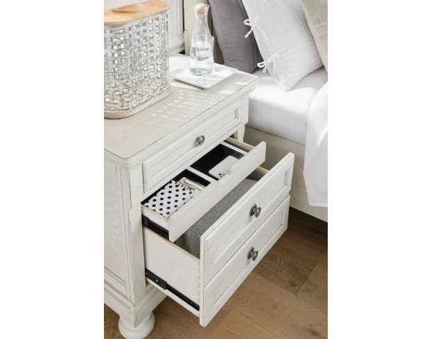 Sleek sophistication is yours when you add this nightstand to your bedroom. Its two ball-bearing drawers give you an abundance of storage space. Plus, the lower drawer contains an additional concealed drawer within and the top drawer includes a felt-lining! The oak white tone gives your home the clean look you crave.