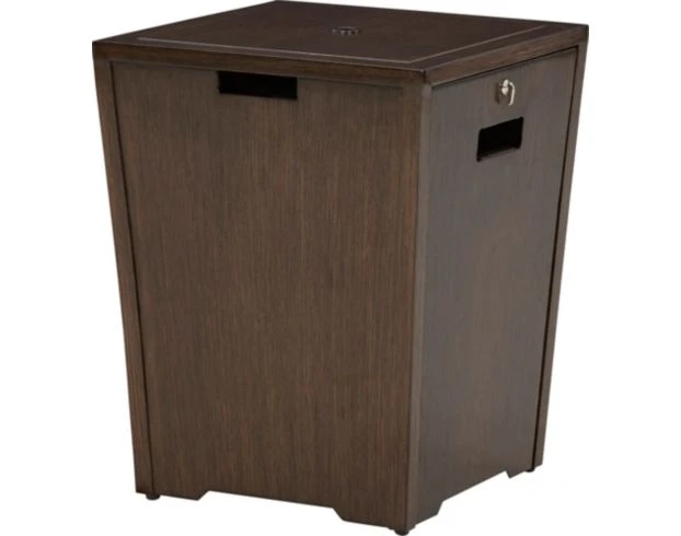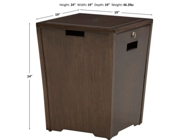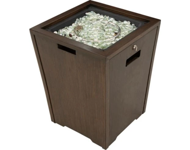 Sporting a hand-painted brown wood-look finish for a sense of earthy elegance, this fire pit table is sure to turn your backyard space into a hot spot for entertaining. The way its flickering flame seems to float on a bed of brown glass beads is truly mesmerizing. This outdoor fire pit, crafted with sturdy rust-proof aluminum and equipped with a burner cover and a polyester protective cover, will weather the seasons beautifully.