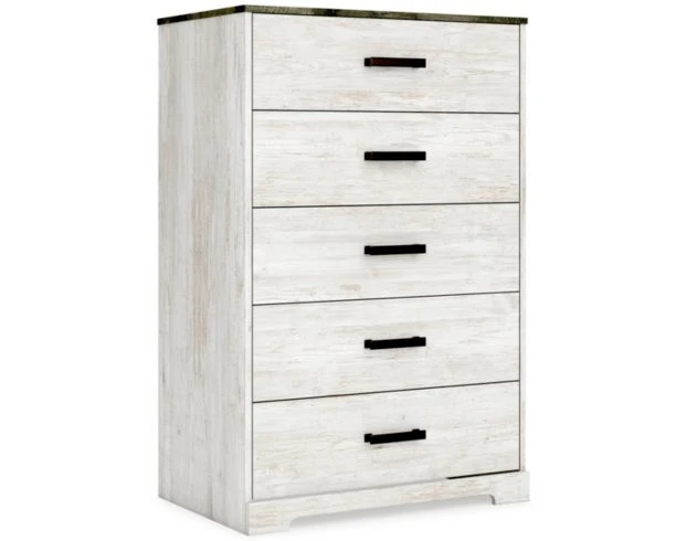 Merge classic relaxation with the ultimate feel of modern appeal with this chest. The two-tone finish keeps this piece light and fresh, while the warm pewter-tone hardware adds an industrial touch. This simple yet versatile piece will make the perfect anchor to your bedroom.