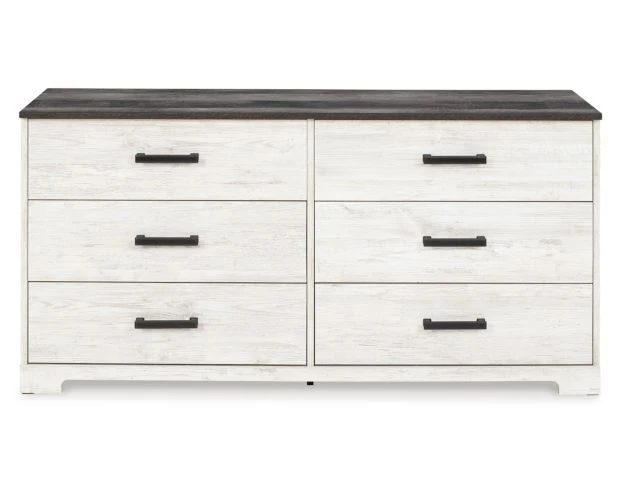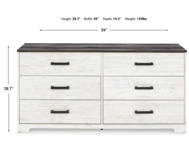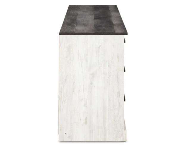 Give provincial a new meaning with the chic look of the Shawburn Dresser. The two-tone finish keeps this piece light and fresh, while the warm pewter-tone hardware adds an industrial touch. The distressed whitewashed body adds a delightfully homespun charm to your space.