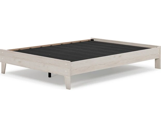 This full platform bed is the perfect solution for simple bedroom style. It features clean lines, a sleek silhouette, and a natural finish over replicated oak grain. Anyone looking for a simple sleeping solution will fall in love with this bed.