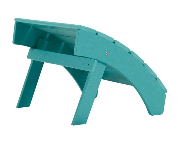 Add cottage-quaint charm to your outdoor oasis with Sundown Treasure turquoise foot stool. Made of MEGA TUFF â„¢ high-density polyethylene material, it’s sure to weather the seasons beautifully. The ottoman’s slatted styling with sloped shaping provides exceptional form and function.