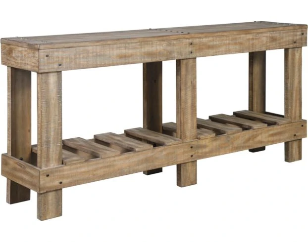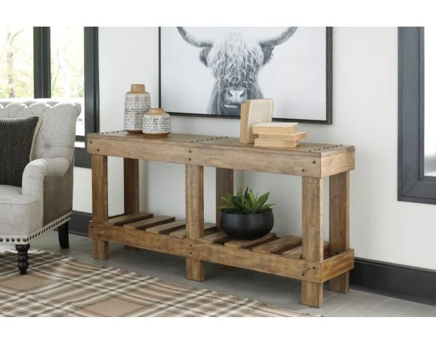Don’t shy away from style. This console table is the perfect addition to your home with its spacious surface top and lower shelf with open-slate shelving. The open concept is great for showcasing decor or storing items. With its warm, rustic appeal and minimalist elements, the distressed brown finish offers an authentic appeal you can’t ignore. LOC 9F