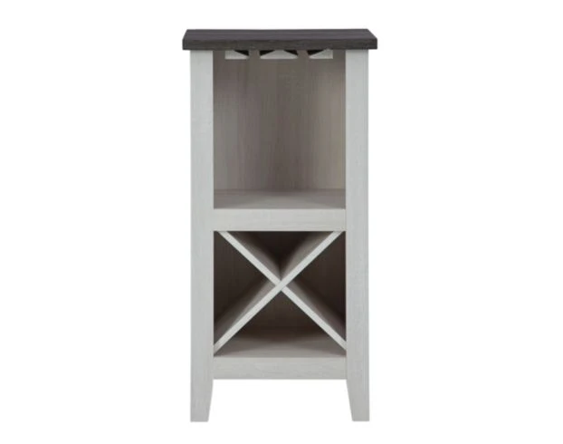 Store your wine in style with this wine cabinet. It features storage space for both wine bottles and glasses, while maintaining a compact design made to minimize floor space. The white tone will add fantastic farmhouse vibes to your space. LOC 3F