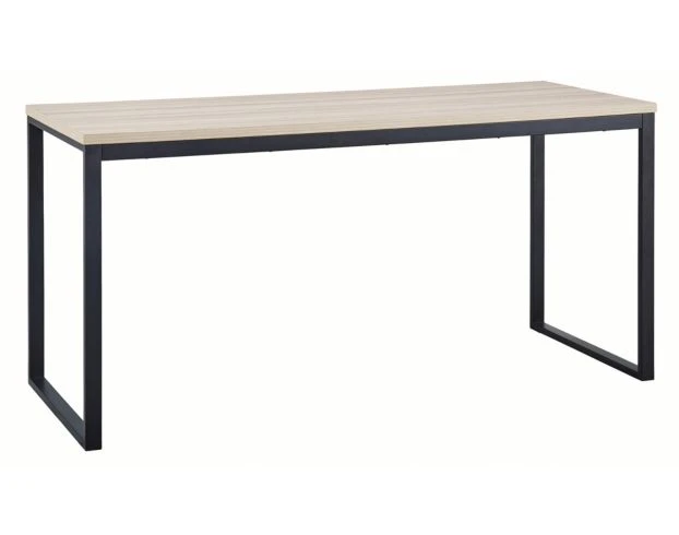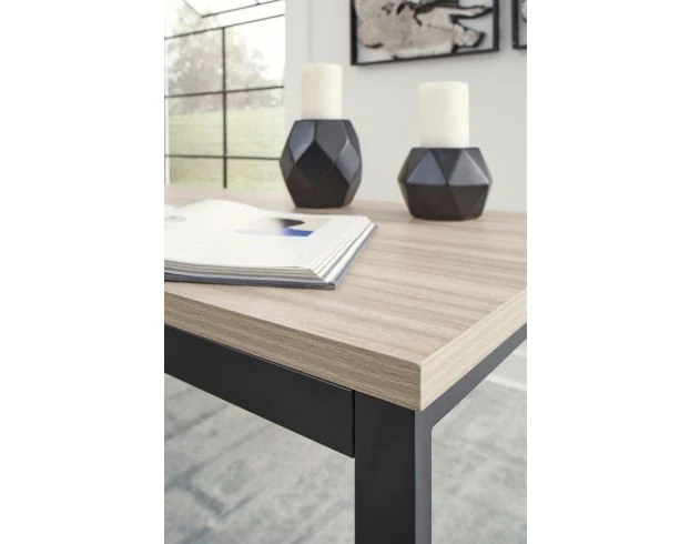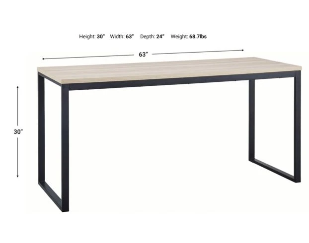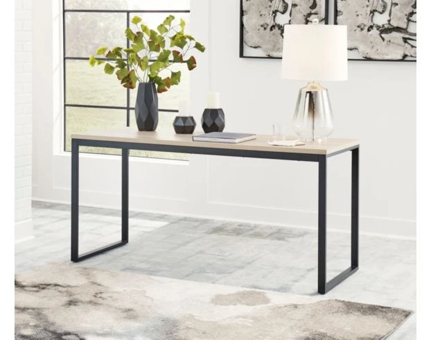 Contemporary meets casual for the ultimate office space with this Ashley Waylowe desk. It aims to please with its durable melamine top and metal base in a powder coat finish. The top features a replicated exotic wood grain in a light tan finish, making this versatile piece perfect for your workspace. DURA TUFF & trade surfaces are made of easy-clean melamine which is heat-, scratch-, and water-resistant.