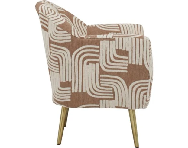 Petite and modern, this accent chair fits spaces that doesn’t have much space! It features supportive and flared arms with a loose, solid foam seat cushion. The metal splayed legs adds a sense of dimension to any room. LOC: 7C