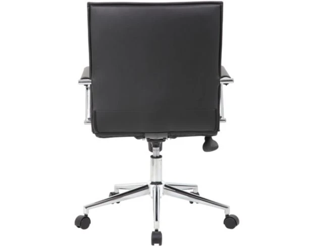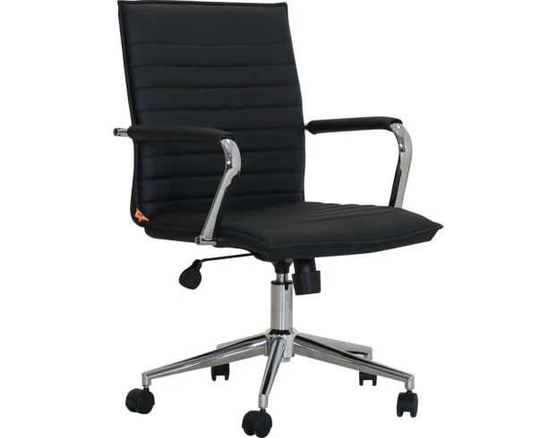 Say hello to contemporary style with this task chair. It flaunts smooth casters, an adjustable seat and tilt, sleek arms, and a 360-degree swivel ability. The black faux-leather paired with a silver metal base makes for stylish and cushioned comfort throughout the entire workday.