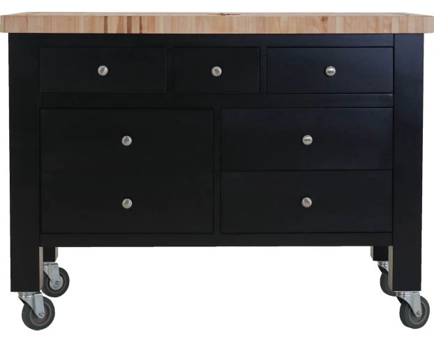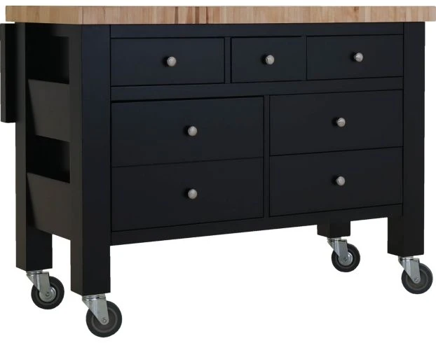 Complete your kitchen with the Canadel Gourmet Island. Featuring a drop-leaf design, six drawers, and multiple magazine and spice racks, this island is the complete package. With it’s combination of a rich dark body and refined light wood top, this piece will help make you the master of your kitchen.
