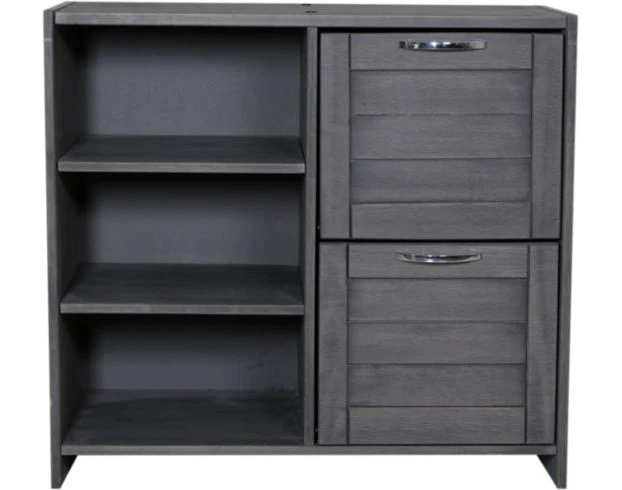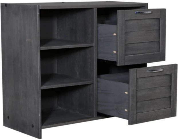 Transitional meets rustic with this two-drawer chest. Featuring an antique gray, lacquered stain, this solid pine chest is a versatile addition for any kids’ bedroom.