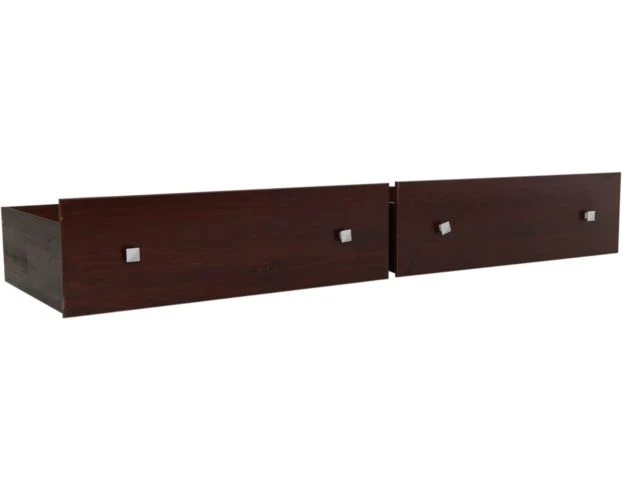Functionality and additional sleeping space combine with these underbed storage drawers. Featuring knob hardware, pine construction and deep finish, these drawers are a versatile addition for any kids’ bedroom.