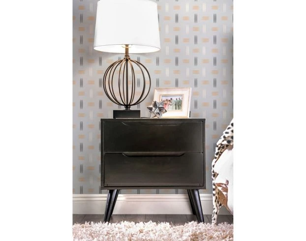 Bring mid-century modern style to your space with the Lennart black nightstand. It features splayed legs, dovetail joints, ball-bearing glides, and two recessed drawers. This durable piece is constructed from solid wood and veneers. The black wood finish will complement any color palette.