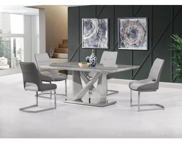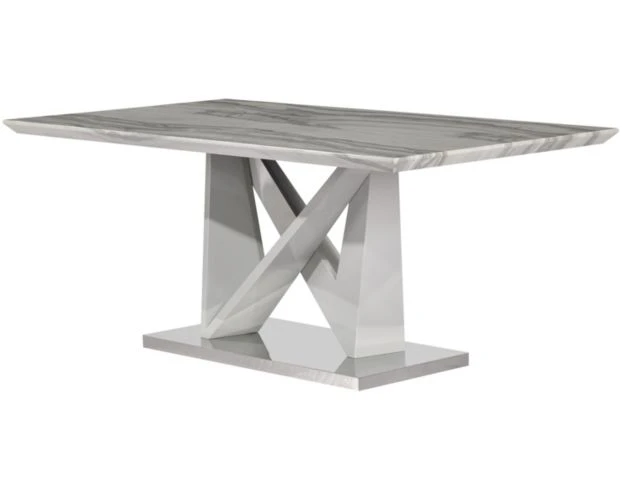 Reimagine your contemporary interior with this table. Its sleek rectangular silhouette, detailed pedestal base, and smooth faux marble top add a sense of flair to any modern home. The gray hue will highlight any decor and create the ultimate centerpiece for your dining room.