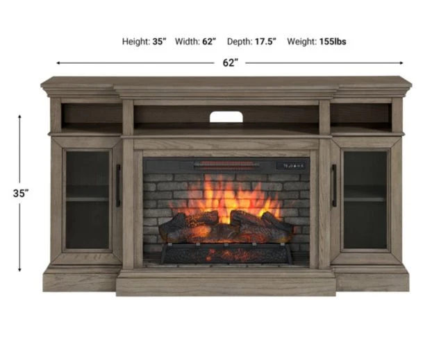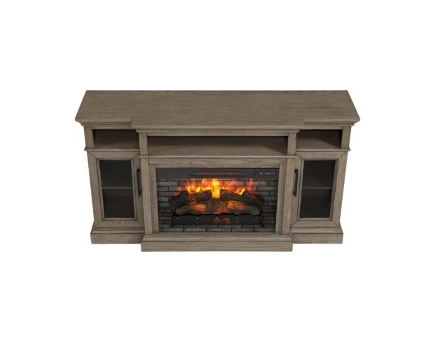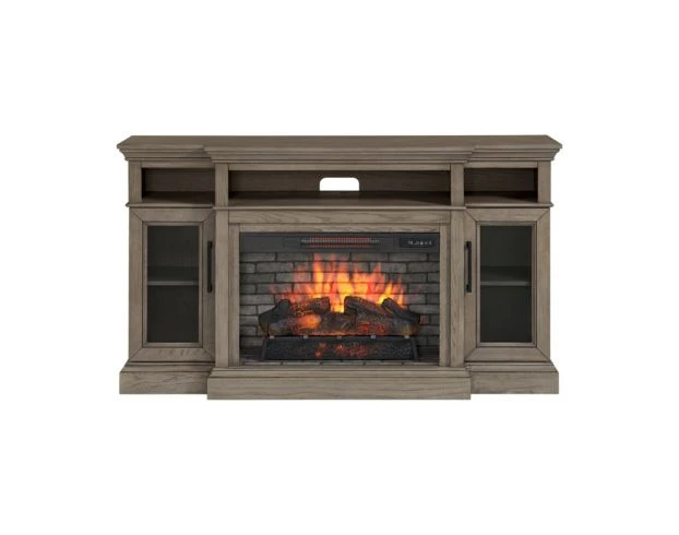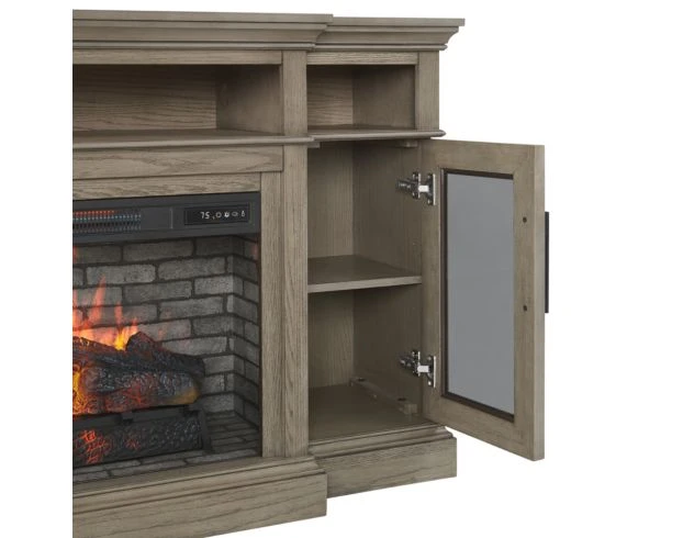 The Westcliffe fireplace media console is a transitional piece that brings together rich wood finishes and modern storage solutions, making it a great choice for your next room. The soft close doors have removable panels that can be installed with clear glass or solid wood. This piece accommodates TVs up to 70 inches and 95 pounds. The innovative electric insert features an LED log set that projects the flame onto the realistic brick panels. A powerful 5,100 BTU infrared quartz heater can be operated with or without the flame effect and provides supplemental heat for rooms up to 1,000 square feet. Adjust the temperature, flame brightness and power using the digital control panel, or the included remote control.