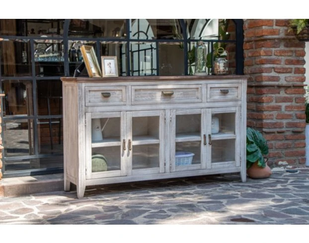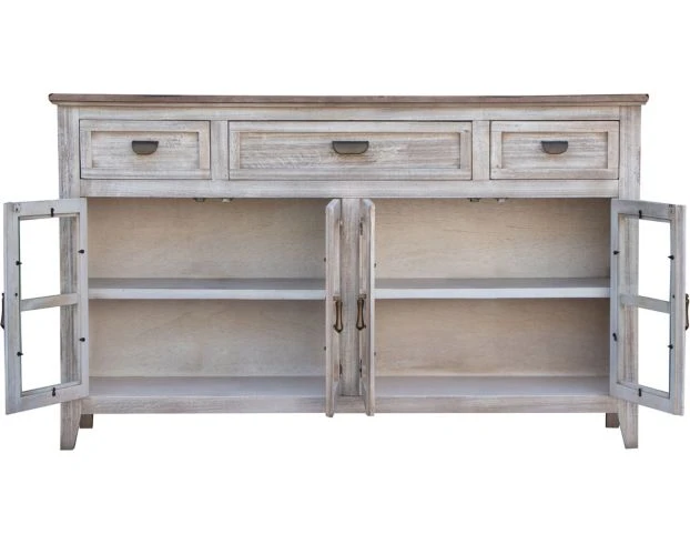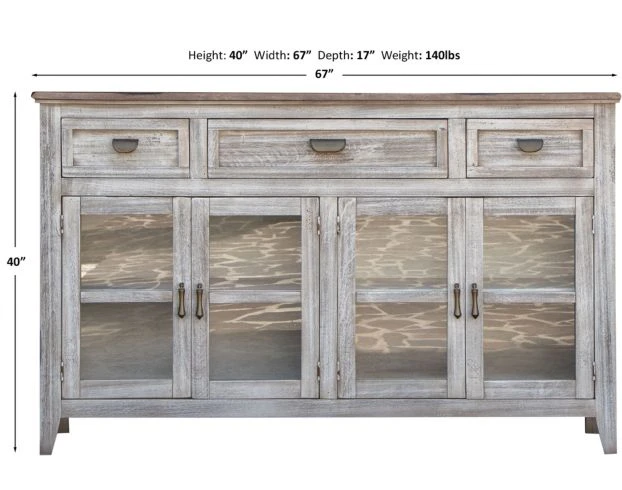Built with 100% solid mango wood, the Sahara server adds function to your dining space. Its durable and eco-friendly wood species is topped with a multi-step lacquer finish in a cream and caramel two tone-finish. The server has three drawers and two cabinets. Inside each cabinet is one fixed shelf. You will have ample room for storing all your necessities.
